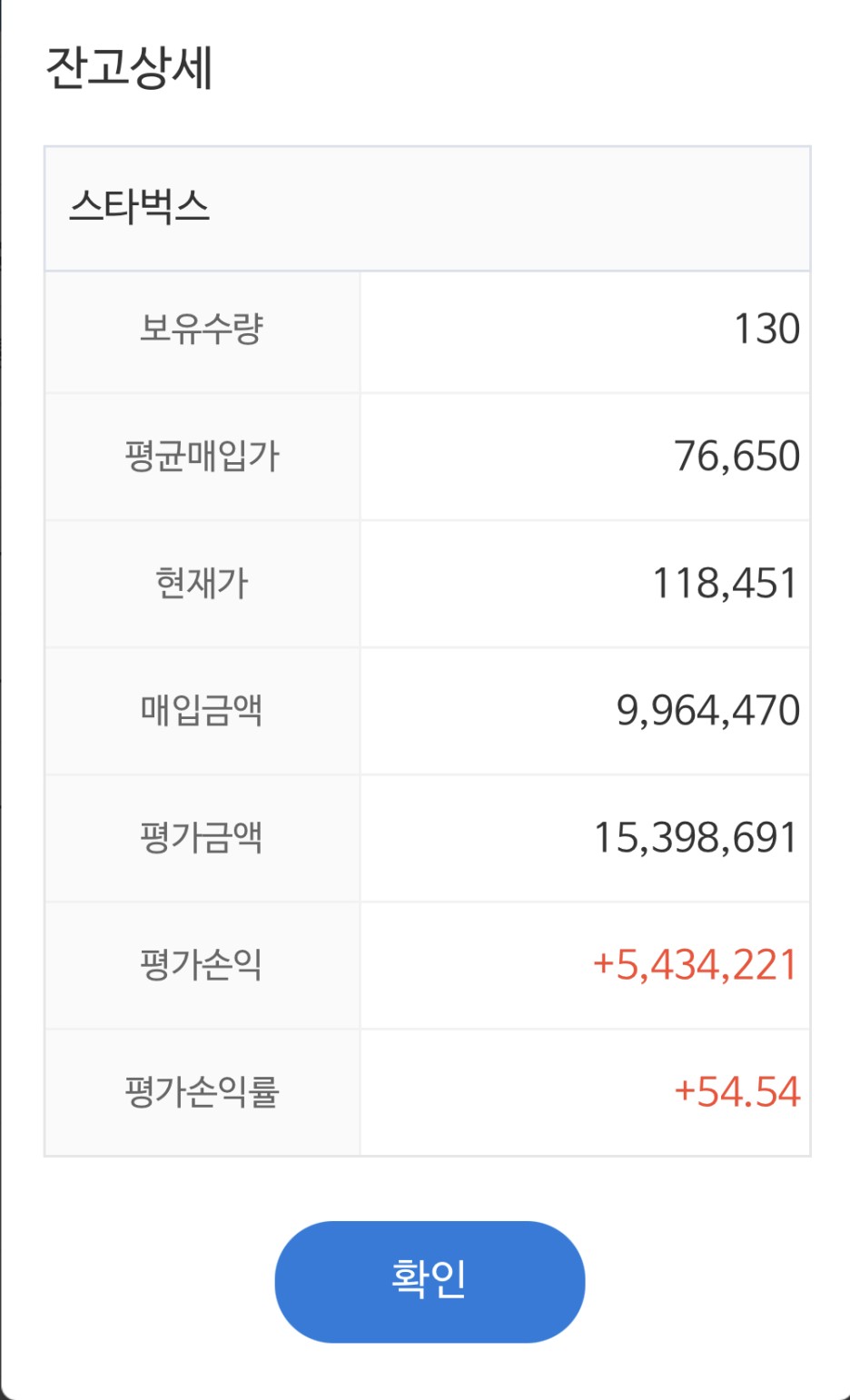 | 스타벅스 5주 추가매수 (2021/3/17, 총 주식수 135주) (0) | 2021.03.17 |