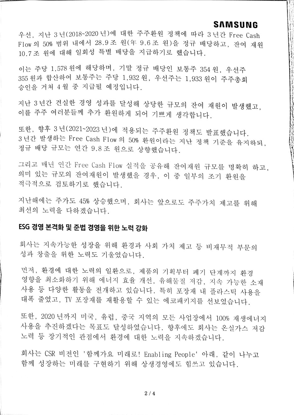 주주총회참석장과 내용 중 제가 기뻤던 부분은 4월에 지급 예정인 특별배당인데요~