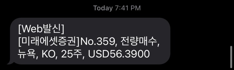 6월 월급날이 되서 자기전에 코카콜라 주식을 시장가보다 쪼금 낮게 설정해서 매수를 걸어 놓고 잤었는데...