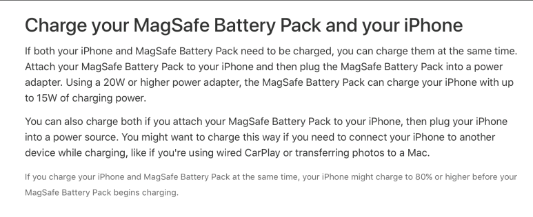 자세한 제품 설명란에 보니 이 MagSafe Battery Pack을 아이폰에 부착한 상태에서 아이폰을 충전하면