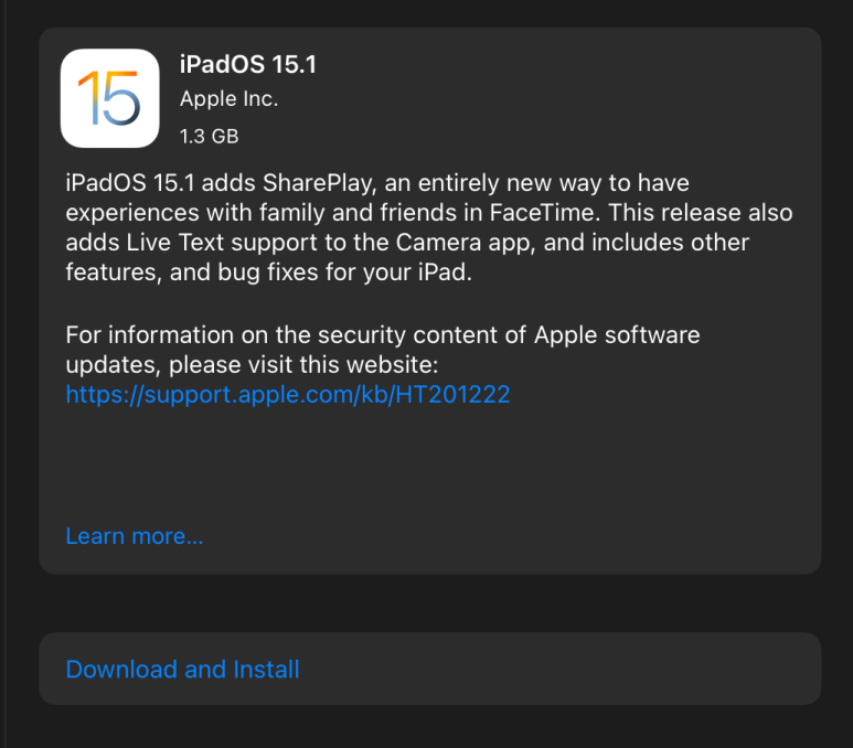 아이폰은 iOS15.1, 아이패드는 iPadOS15.1 버전으로 업데이트 크기는 약 1.5GB이며