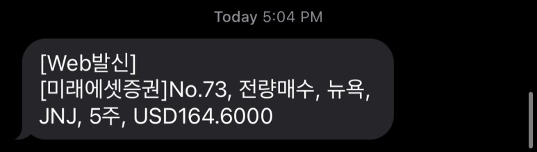 그래도 기쁜 월급날이 와서 오늘도 존슨&존슨 주식 5주를 1주당 $164.6에 매수를 하였습니다^^;;;