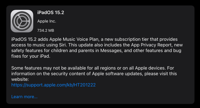 아이폰은 iOS15.2, 아이패드는 iPadOS15.2 버전으로 업데이트 크기는 약 730MB ~ 900MB이며
