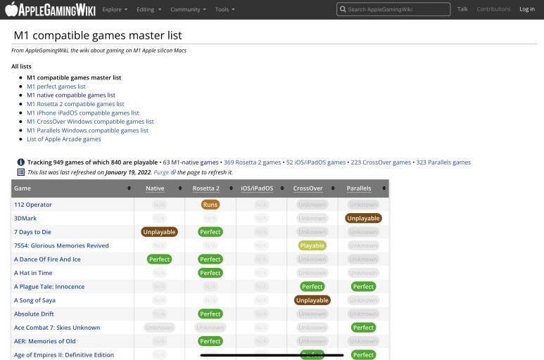 다음은 Apple Silicon Games 사이트에서 확인하는 방법입니다.