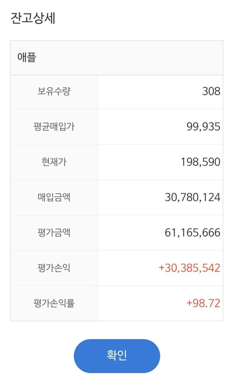 2022년 3월 1일 기준으로 애플 수익률은 98.72%이며,
