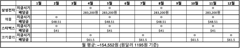 저번 글에서 제가 보유하고 있는 종목, 투자 기준, 그리고 다달이 현재 보유하고 있는 주식을 기반으로 매달 얼마의 배당금을 받을 수 있는지 알아봤었습니다.