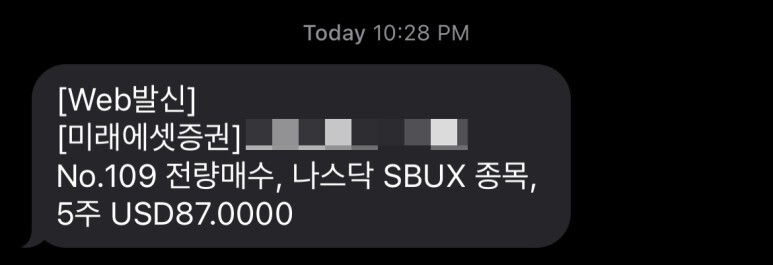 3월15일에 애플 10주 매수에 이어 스타벅스 주식을 주당 $87에 5주를 매수 하였고 종 주식수가 165주로 늘었습니다~