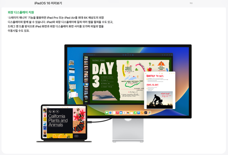 아이패드에 iPadOS 16 배타버전 설치를 하고 떨리는 마음으로 외장 모니터를 연결했는데....