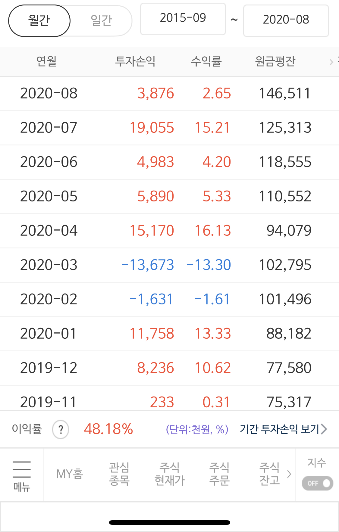 (물론 매년 약 8% 수익이 난 것은 아니며 2015년 9월부터 2020년 8월까지 수익률을 5년으로 나눈 수치에서 약 1% 뺐습니다)
