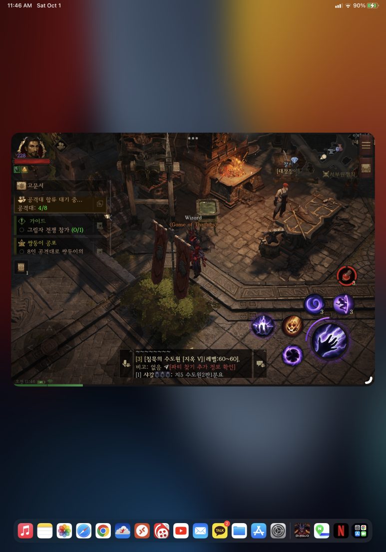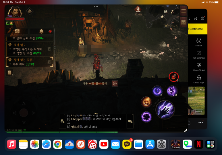 간단한 테스트 후 디아블로 이모탈 게임을 하면서 다른 창을 활성화하여 멀티테스킹을 시도해보았습니다~