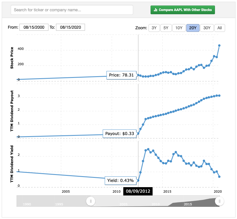 실제로 애플은 꾸준히 배당금을 늘려왔기 때문에 장기투자시 주가상승과 배당금 상승의 이득을 동시에 챙길 수 있습니다~^^