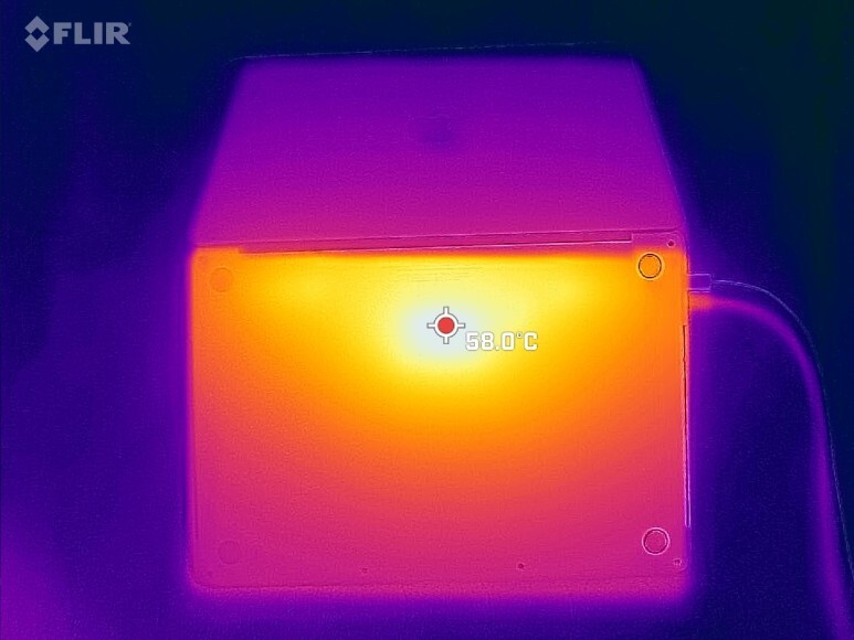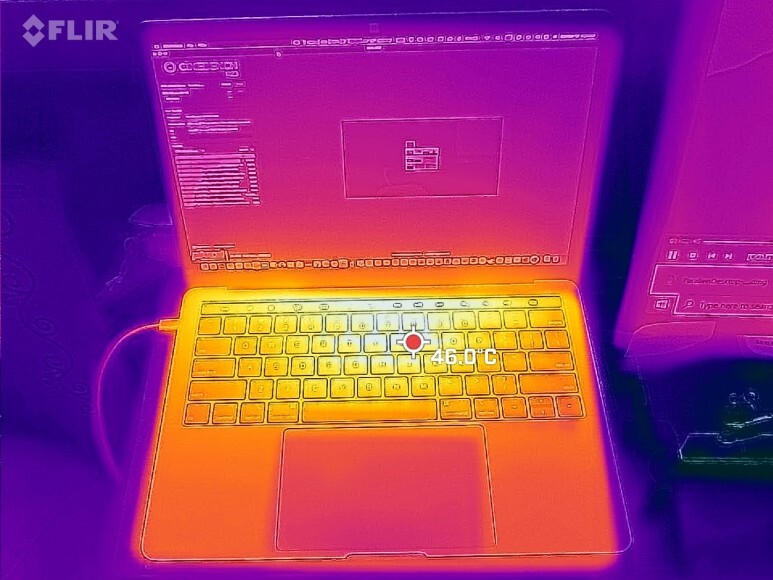 그 때문에 노트북의 온도는 상승한 것을 확인하였고, 하판의 온도는 손을 대면 화상을 입을것 같은 느낌을 받을 정도로 뜨거워 진 것을 확인하였습니다 (팬 컨트롤을 하면 발열을 어느정도 잡을 수는 있겠지만...)