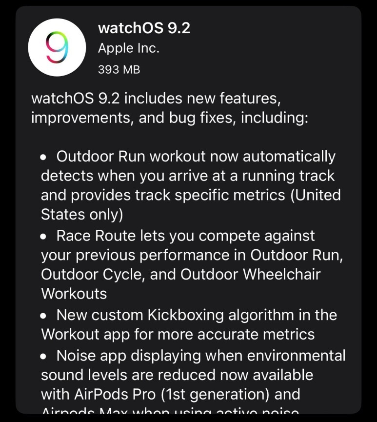 애플워치 WatchOS 9.2는 393MB(애플워치 4세대 기준) 입니다.