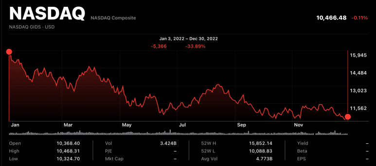 특히, 기술주와 성장주 중심인 나스닥의 경우 -33.89%를 기록하여 기술주 중심으로 포트폴리오를 가지고 있는 저의 수익률에도 악영향을 주었습니다.
