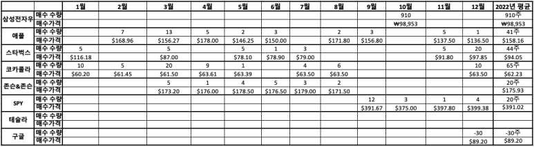 현 주식 보유현황 & 2022년 주식 매수 기록 & 배당금
