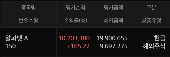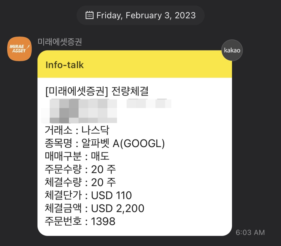 자기전에 알파벳(구글)을 한주에 $110에 20주 매도를 예약했었는데 자고 있어나니 전량 체결이 되어 있는것을 확인하였습니다~^^