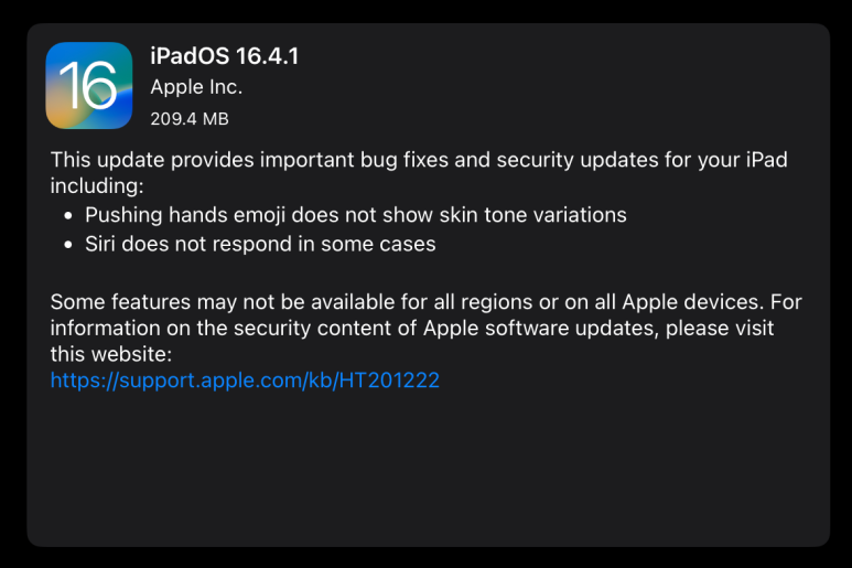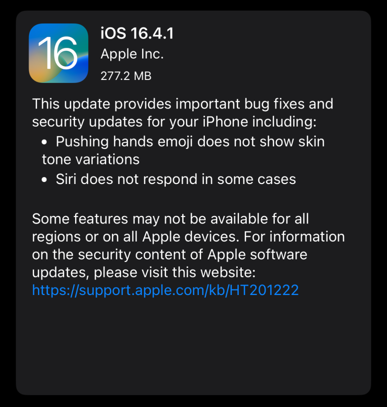 아이폰은 iOS16.4.1, 아이패드는 iPadOS 16.4.1 버전으로 업데이트 크기는
