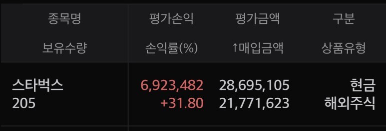 2023년 5월 4일 기준으로 스타벅스 주식 수익률은 31.8%이고