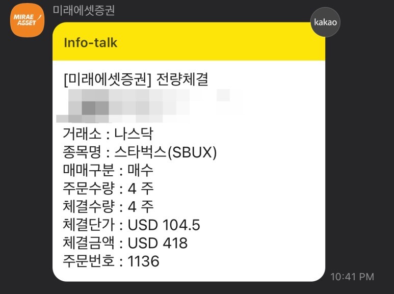 2023년 5월 월급을 받은 기념으로 애플 주식을 매수하면서 스타벅스 주식도 주당 $104.5에 4주를 매수하였습니다^^