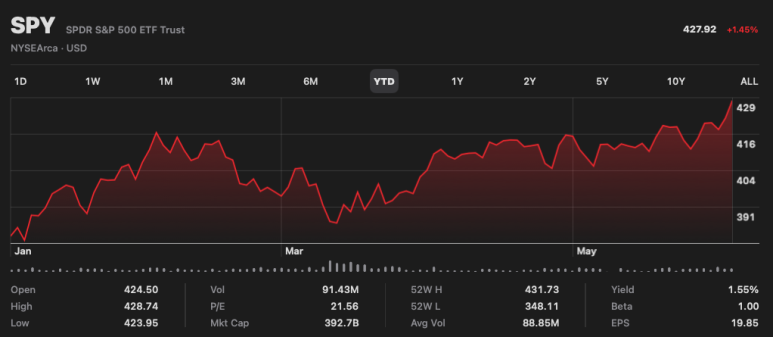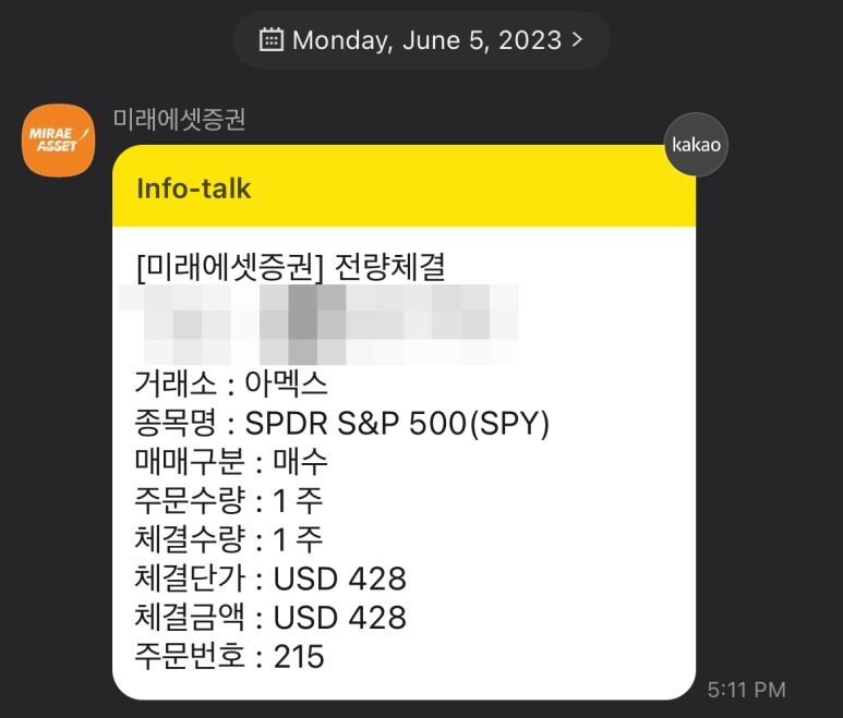 오늘 월급날 기념으로 퇴근 후 미국장이 열리기 전에 SPDR S&P500 ETF (SPY)를 주당 $428에 1주를 매수하였습니다~