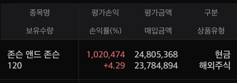 오늘 오후에 여김없이 직장에서 정신없이 일하던 도중 존슨&존슨으로부터 배당금을 수령했다는 반가운 카톡을 확인했습니다~^^