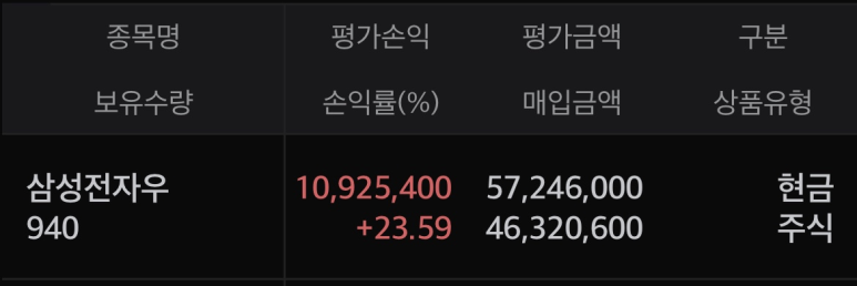 이번 매수로 저는 삼성전자우를 총 940주를 보유하게 되었으며