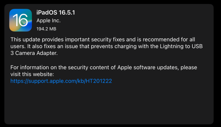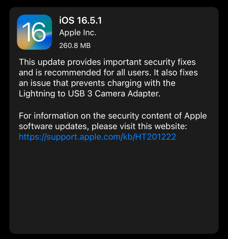 아이폰은 iOS16.5.1, 아이패드는 iPadOS 16.5.1, 애플워치는 WatchOS 9.5.2 버전으로 업데이트 크기는