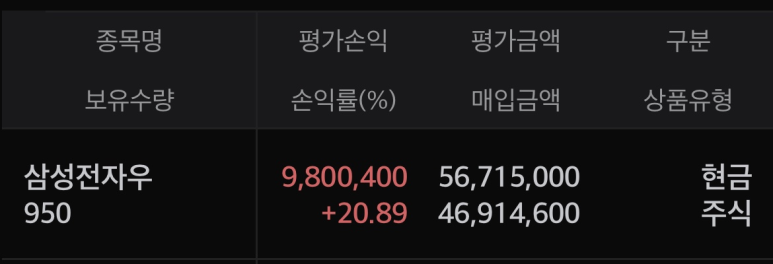 이번 매수로 저는 삼성전자우를 총 950주를 보유하게 되었으며