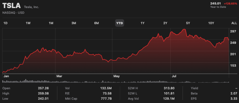어떤 주식을 매수할까 고민하다가 테슬라를 주당 $245에 2주 매수하였습니다~