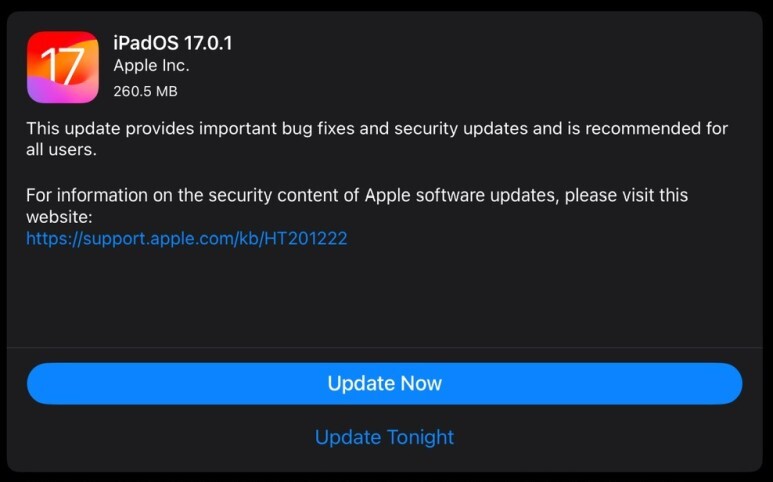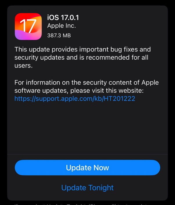 아이폰은 iOS17.0.1, 아이패드는 iPadOS 17.0.1, 애플워치는 WatchOS 10.0.1 버전이며