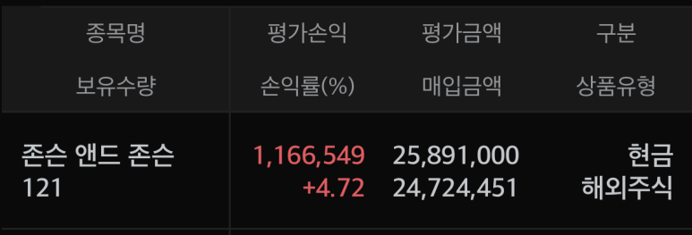 10월 10일 기준으로 전 존슨앤드존슨을 121주 보유하고 있고