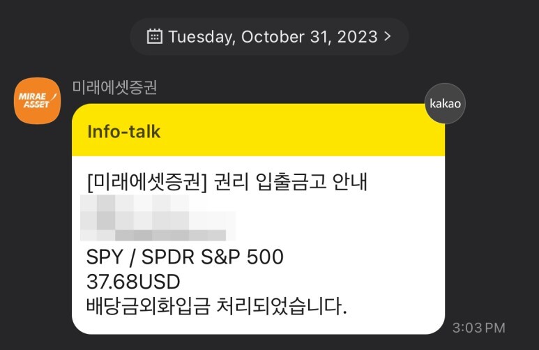 최근 직장을 이직하고 적응하면서 일하는 도중에 2023년 네번째로 SPDR S&P 500에서 배당금을 수령하였습니다^^