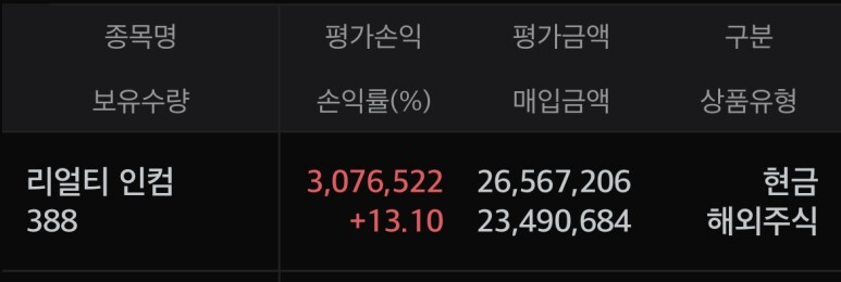최근 포트폴리오 변경으로 존슨&존슨을 매도한 금액으로 리얼티 인컴을 매수하였었습니다~