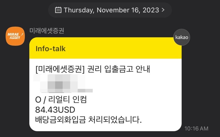 저는 리얼티 인컴을 388주를 보유 중이기 때문에, 오늘 오전 세금을 제외하고 달달하게 $84.43를 받았습니다~!