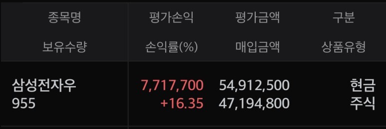 현재 저는 삼성전자우를 955주를 보유 중여서 세전 기준으로 344,755원이 입금되었고