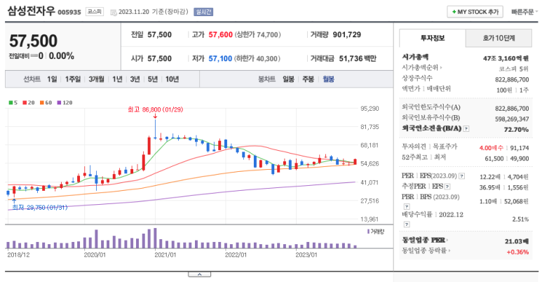 현재 삼성전자 PER가 12.22정도로 비싸지도 않지만 매수하기 매우 싼 가격대도 아닌것 같습니다.