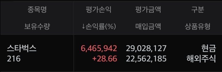 2023년 11월 24일 기준으로 저는 스타벅스를 216주를 보유하고 있으며,
