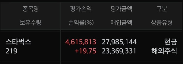 2023년 12월 09일 기준으로 저는 스타벅스를 219주를 보유하고 있으며,
