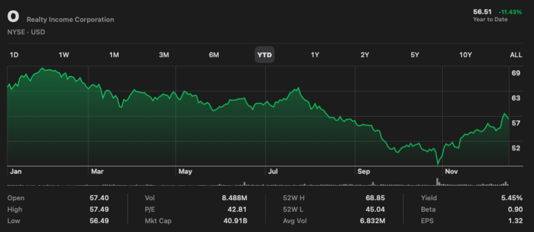 주가는 1주당 $56.51이며, 투자 수익률은 20.82%이고, 연간 배당금은 5.45% 입니다~!