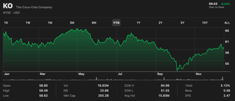 2023년 12월 19일 기준으로 저는 코카콜라를 367주를 보유하고 있으며,