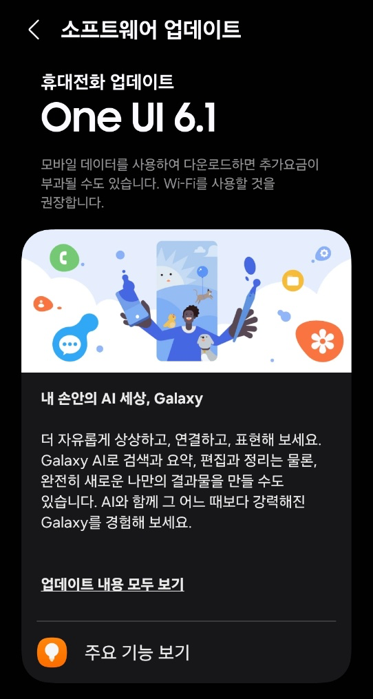 오늘 퇴근하고 집에와서 핸드폰을 확인해보니~드디어 삼성에서 One UI 6.1을 배포한 것을 확인하였습니다~!^^