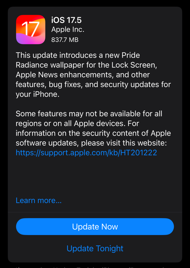 이 업데이트에는 잠금 화면으로 사용할 수 있는 프라이드 래디언스 배경화면이 새롭게 추가되었으며, iPhone의 기타 기능 향상, 버그 수정 및 보안 업데이트를 포함합니다.