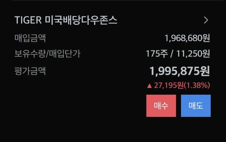 2024년 6월 4일 기준으로 저는 TIGER 미국배당다우존스를 175주를 보유중이며