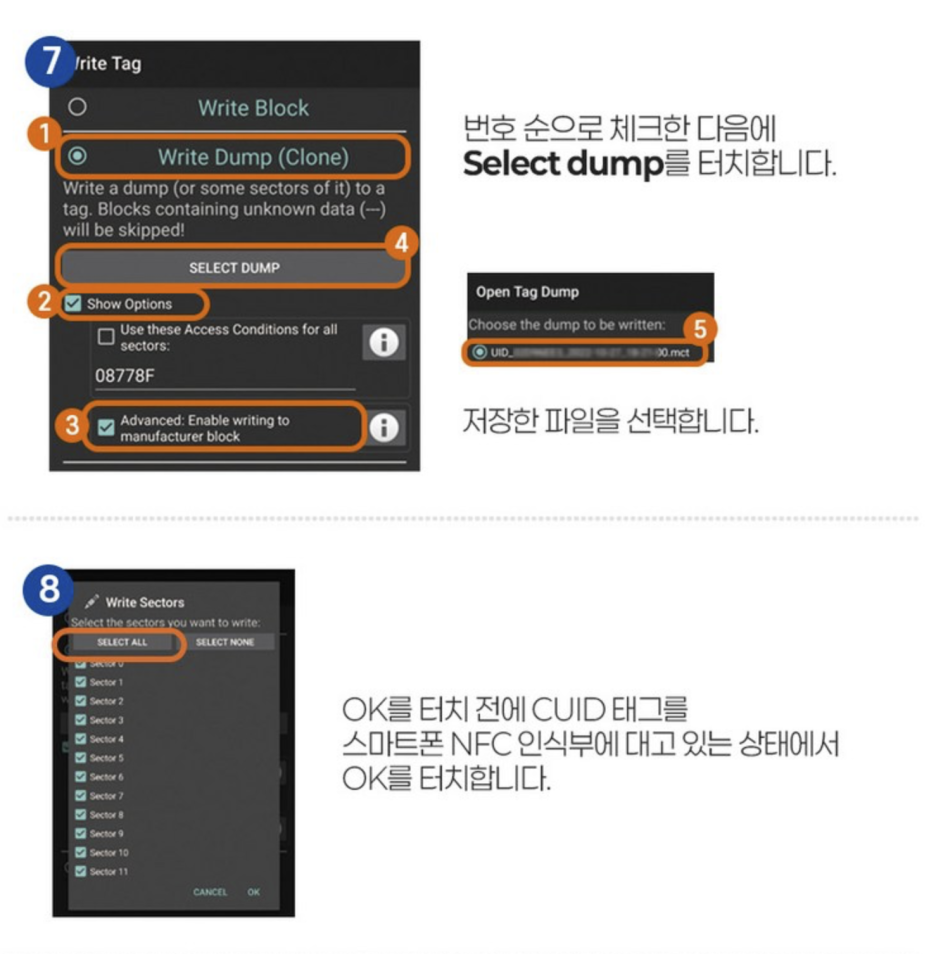 제가 구매했던 쿠팡에 판매자 정보에 의하면 이 스티커를 사용하기 위해서는 RFID 복사기나 안드로이드 스마트폰이 필요합니다~!