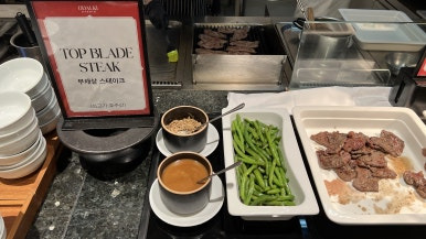 저는 이 중 LA갈비, 부채살 스태이크, 트러플 볶음밥, 떡볶이 그리고 튀김이 맛있었고