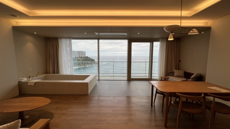 방에 들어가자마자 고급스러운 분위기의 넓은 방과 오션뷰가 상당히 인상 깊었고