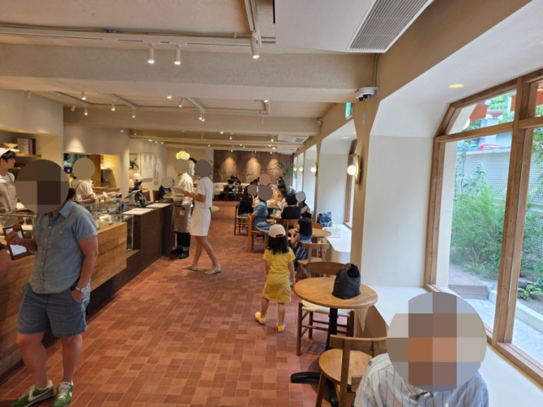 입구로 들어와서 쭉 들어오면 오른쪽에 카페건물이 있는데 입구에는 카페자리가 없을때 워이팅을 할 수 있는 케치테이블 테블릿이 있었습니다.