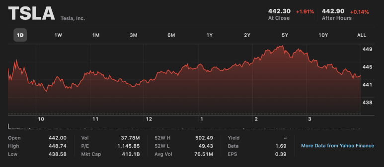 현재 테슬라 주식 1주당 가격은 $442.3로 공개매수에 응하면 손해를 보면서 주식을 넘겨야하는 상황입니다.