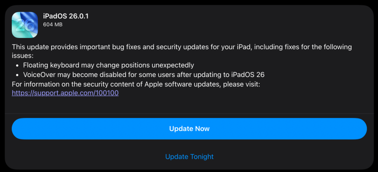 iPadOS 26.0.1