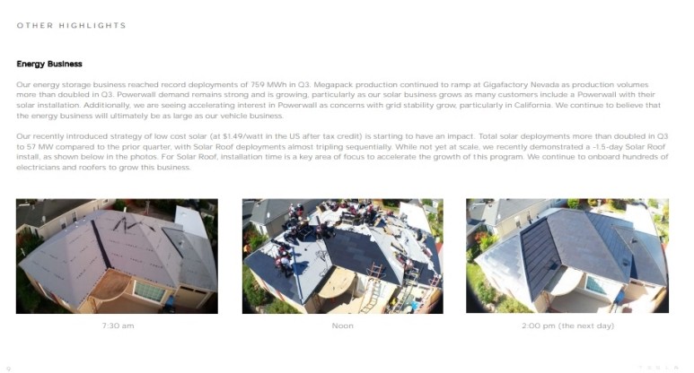 마지막으로 이번 3분기 리포트에 제가 주의깊게 본 부분은 테슬라의 에너지 사업분야로